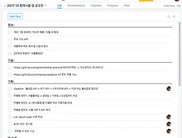 2017_06_최종_수정.zip, 2017_06_최종_진짜마지막.zip, 2017_06_최종_아까그건쓰지마세요.zip 라는 파일이 "2017과제폴더1"에 다른 200개의 파일과 함께 들어있다면, 나에게 필요한 파일을 찾는데 얼마나 오랜 시간이 걸릴까요? 이 시스템에서는 제일 마지막에 올린 것이 바로 표시되고, 그 누구도 헷갈릴 수 없으며, 파일을 못찾은 사람이 "니가 파일을 안올렸잖아"라는 핑계를 댈 수 없습니다. 활용법: 회의 즉시 해야할 일(업계용어로 액션 아이템 이라고도 함)을 task로 만들고, 그걸 담당자에게 할당합니다. 화면 가운데의 목록에서는 엔터를 치면 다음 태스크가 곧바로 생성됩니다. 태스트를 적극적으로 많이 만드세요. 필요 없으면 지우면 됩니다. 각 태스크에는 댓글도 달 수 있습니다. 추가 요구사항이나 잘했다는 칭찬도 남길 수 있습니다. 이슈 트래킹을 쓰는지 여부는 그 프로젝트가 얼마나 전문적인지를 나타내주는 척도입니다. 기업에서는 어떤 종류이든, 이슈 트래킹 시스템을 쓰지 않는 곳이 없습니다. 만약 안쓴다면 거기는 가짜입니다. 퇴사하세요. |